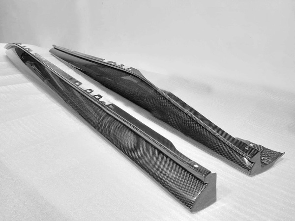 With an impeccable finish these Carbon Fiber side skirts do come in a glossy finish, and they are made with the exact same quality carbon fiber and weave as used by Ferrari.